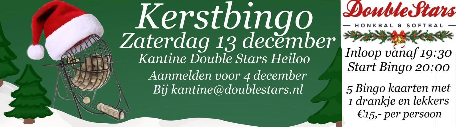 Op zaterdag 13 december organiseren we een Kerstbingo bij Double Stars! Een gezellige, feestelijke avond in de kantine vol prijzen, gezelligheid en winterse sfeer. 🌟